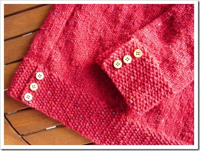 My Red Sweater is coming along nicely. I wanted to incorporate some buttons, and this is what I ended up with. Now I just need to figure out if I want three small ones or two bigger ones...