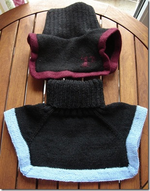 The neckwarmer debacle has now been corrected by giving Mr. Shrinker a new one for his birthday. Not as fancy as the first one, but it will do. The yarn (Dale Baby Ull) is a bit scratchier than Rowan 4 Ply Soft, but that's only fair I guess. Let it be his punishment for felting the first one. ;)