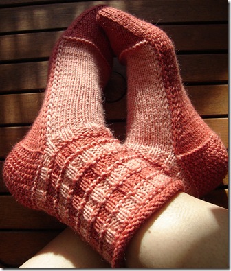 Those socks are fantastic! I have that book and was looking over that pattern a few days ago. Great job and beautiful yarn.